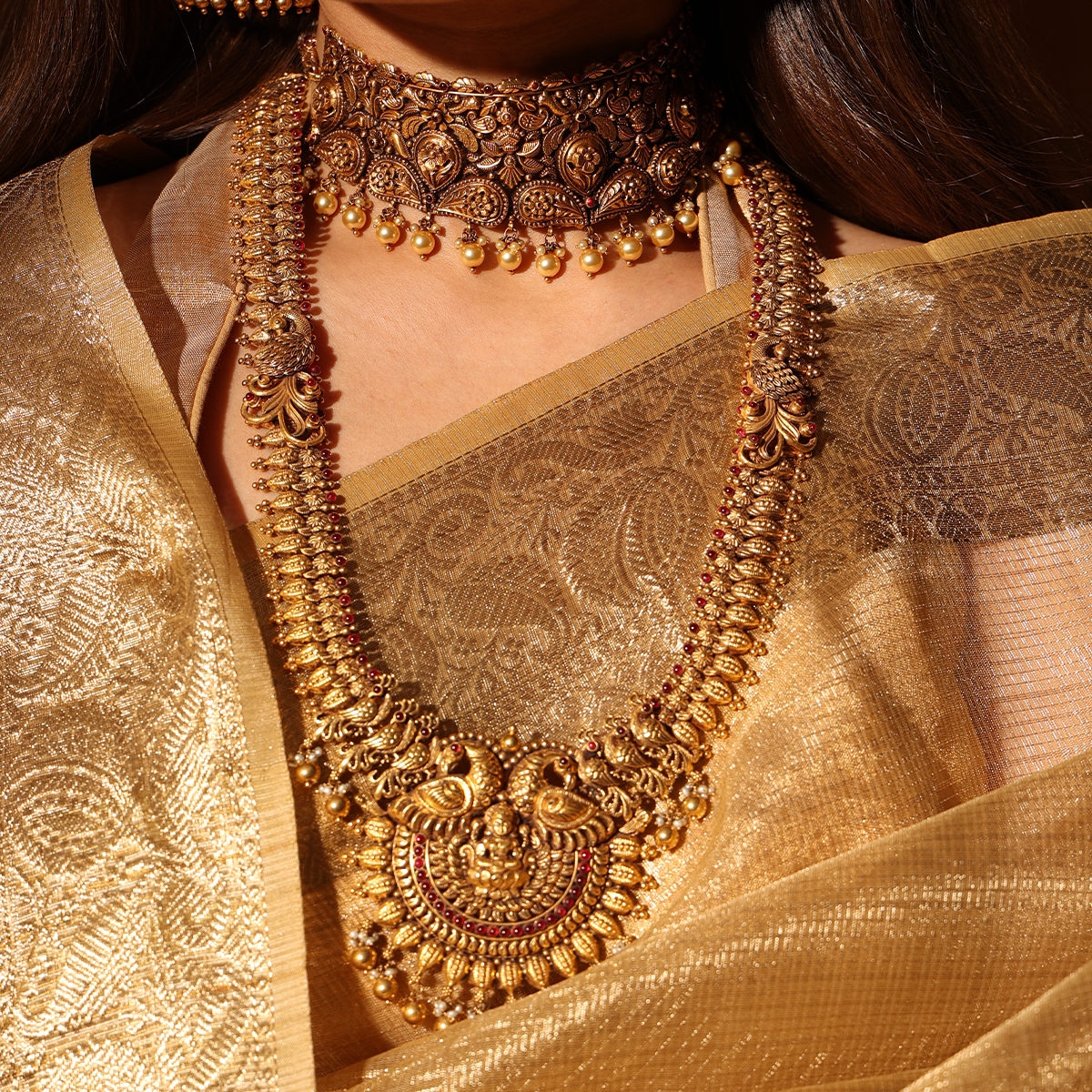Rooted in the sacred art of South Indian heritage, Ribbons 22 Karat Hallmarked Temple Jewellery is a tribute to the grandeur of ancient temples and the divine grace of deities. Each piece is meticulously handcrafted by master artisans, echoing the opulence of a bygone era with an elegance that transcends time.